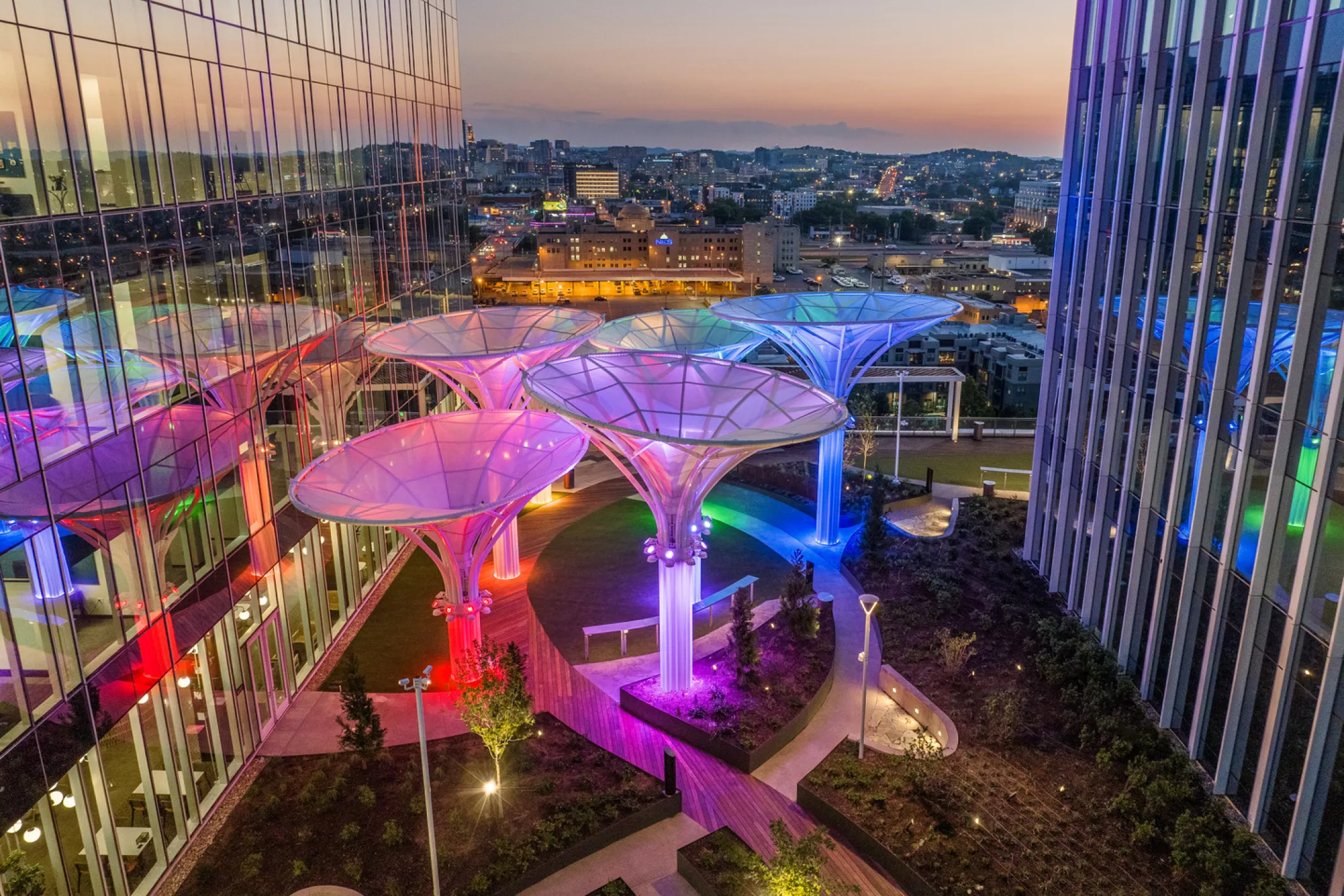 This medical facility is a state-of-the-art cancer center featuring comprehensive care and treatment for patients.